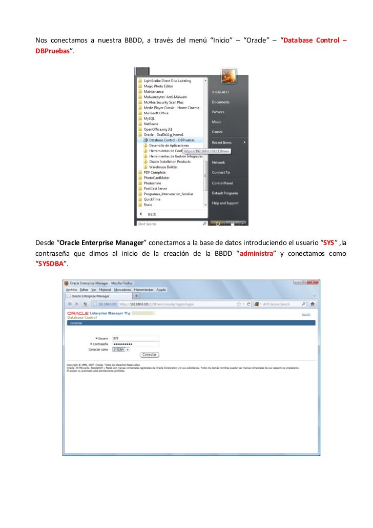 “Oracle” – “Data base Control –DB Pruebas de Oracle Enterprise Manager”
