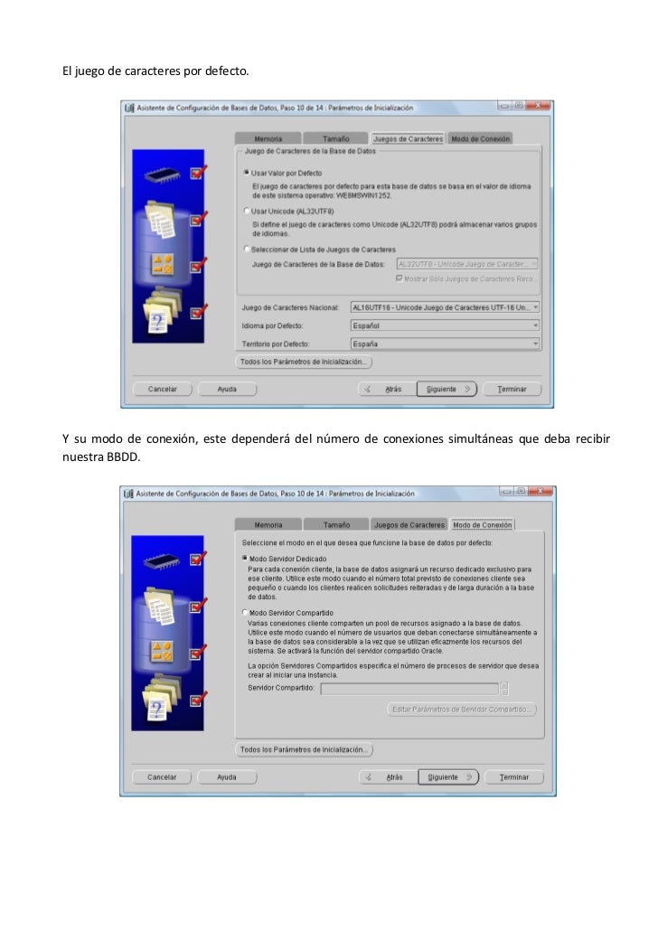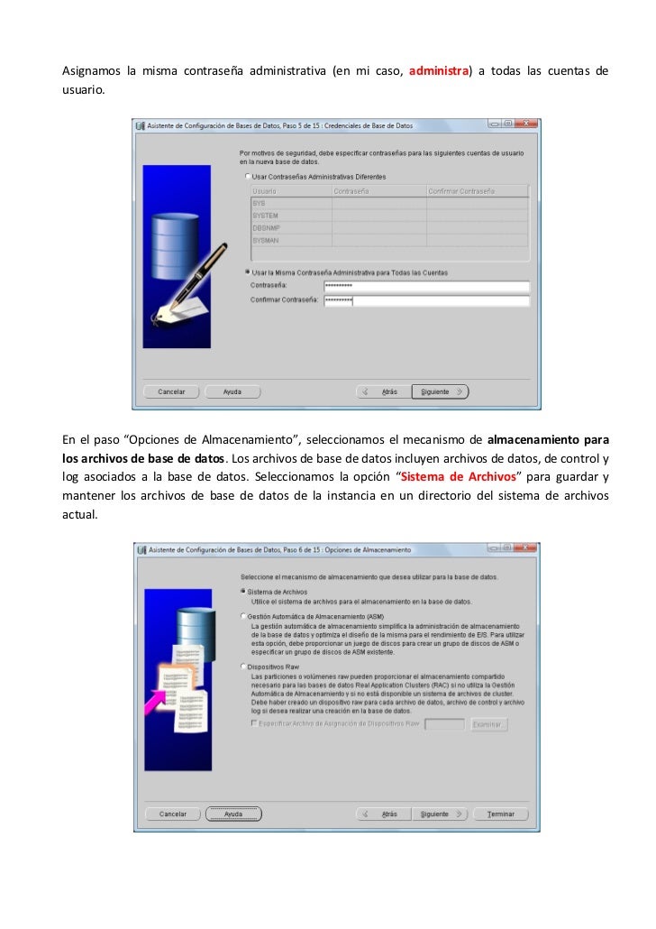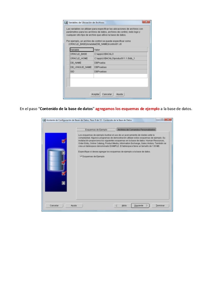 de datos con el SID XXX, también se crea la instancia de base de datos y
