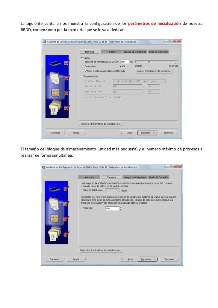 parámetros de inicialización de nuestra BBDD, comenzando por la memoria