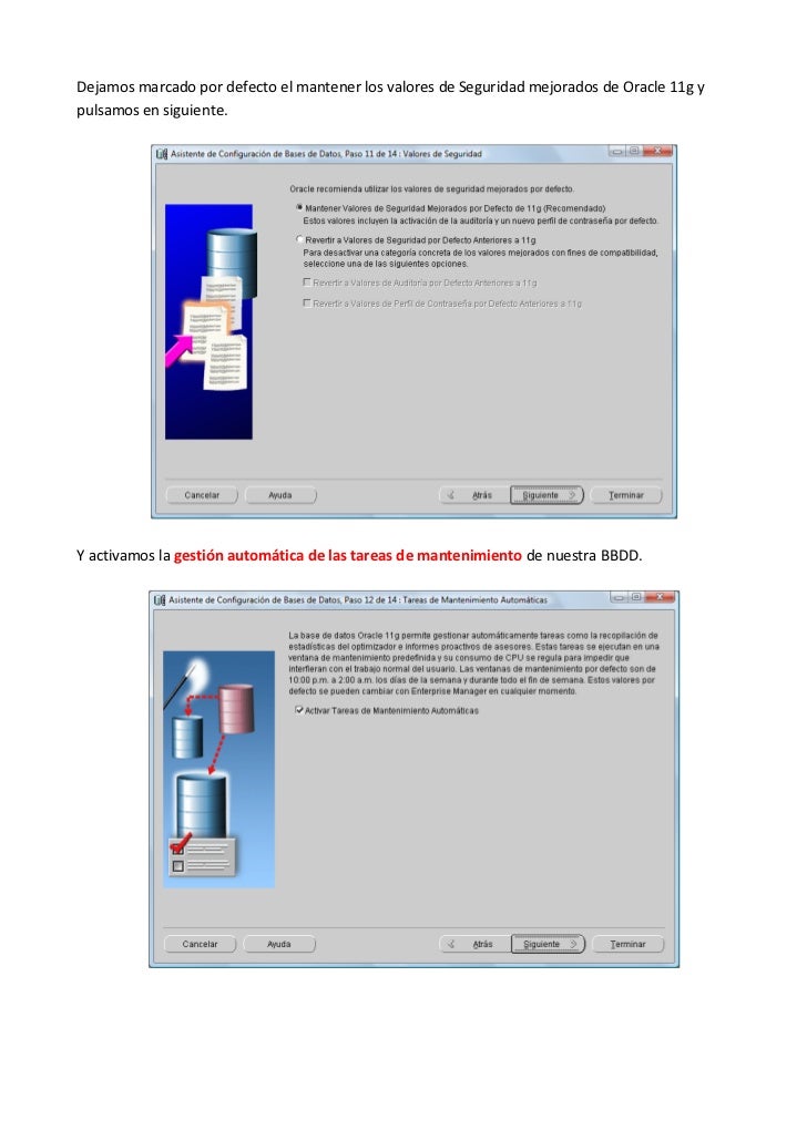 mejorados de Oracle 11g y pulsamos en siguiente. Y activamos la gestión